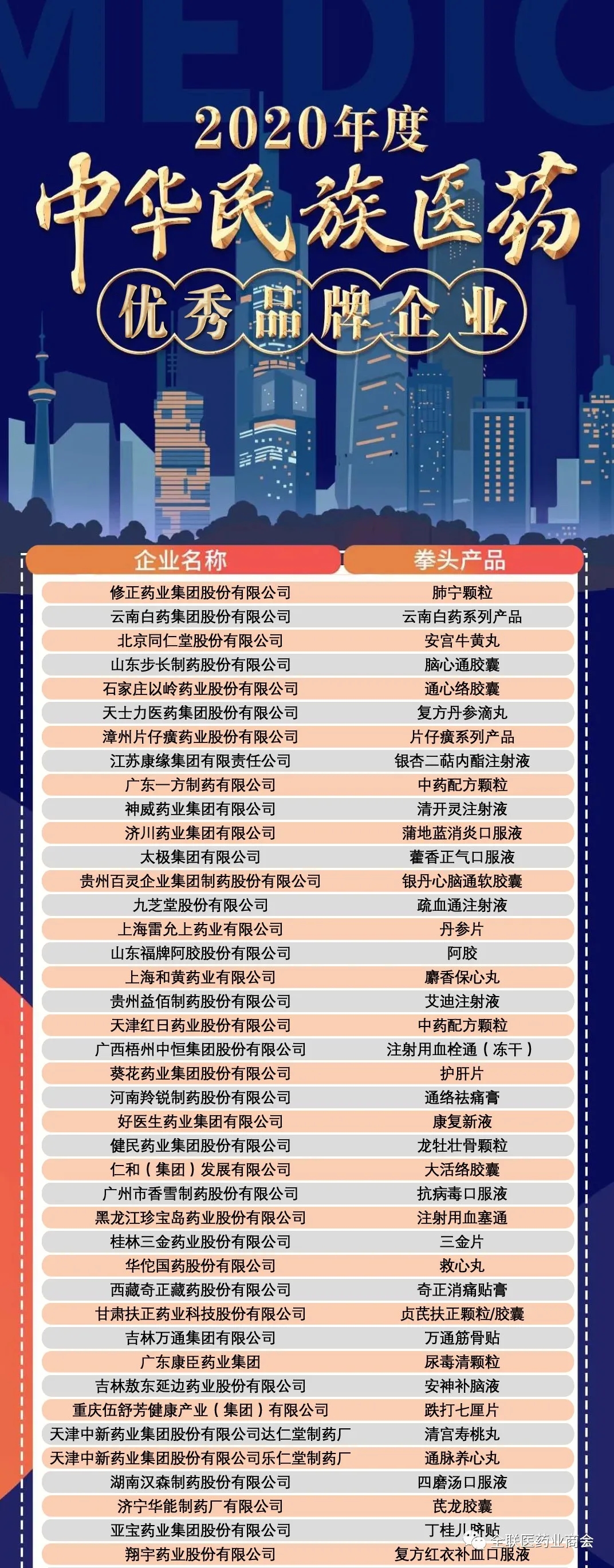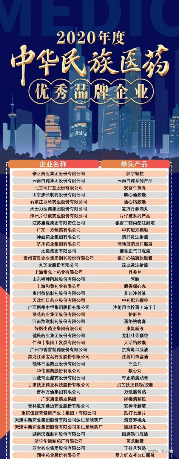 全國(guó)工商聯(lián)醫(yī)藥業(yè)商會(huì)通過(guò)企業(yè)申報(bào)、地方工商聯(lián)推薦、各專(zhuān)業(yè)分會(huì)信息匯總以及網(wǎng)絡(luò)數(shù)據(jù)分析等途徑,經(jīng)過(guò)秘書(shū)處統(tǒng)計(jì)整理,綜合市場(chǎng)銷(xiāo)售額、行業(yè)占比、品牌認(rèn)知、科技創(chuàng)新、國(guó)際化程度以及企業(yè)專(zhuān)精特新的特點(diǎn)等因素,報(bào)評(píng)審委員會(huì)評(píng)選出“2020 年度中華民族醫(yī)藥優(yōu)秀品牌企業(yè)”。本次評(píng)選,旨在弘揚(yáng)民族醫(yī)藥、打造民族品牌,樹(shù)立行業(yè)標(biāo)桿、發(fā)揮榜樣作用、促進(jìn)民族醫(yī)藥產(chǎn)業(yè)健康發(fā)展。
