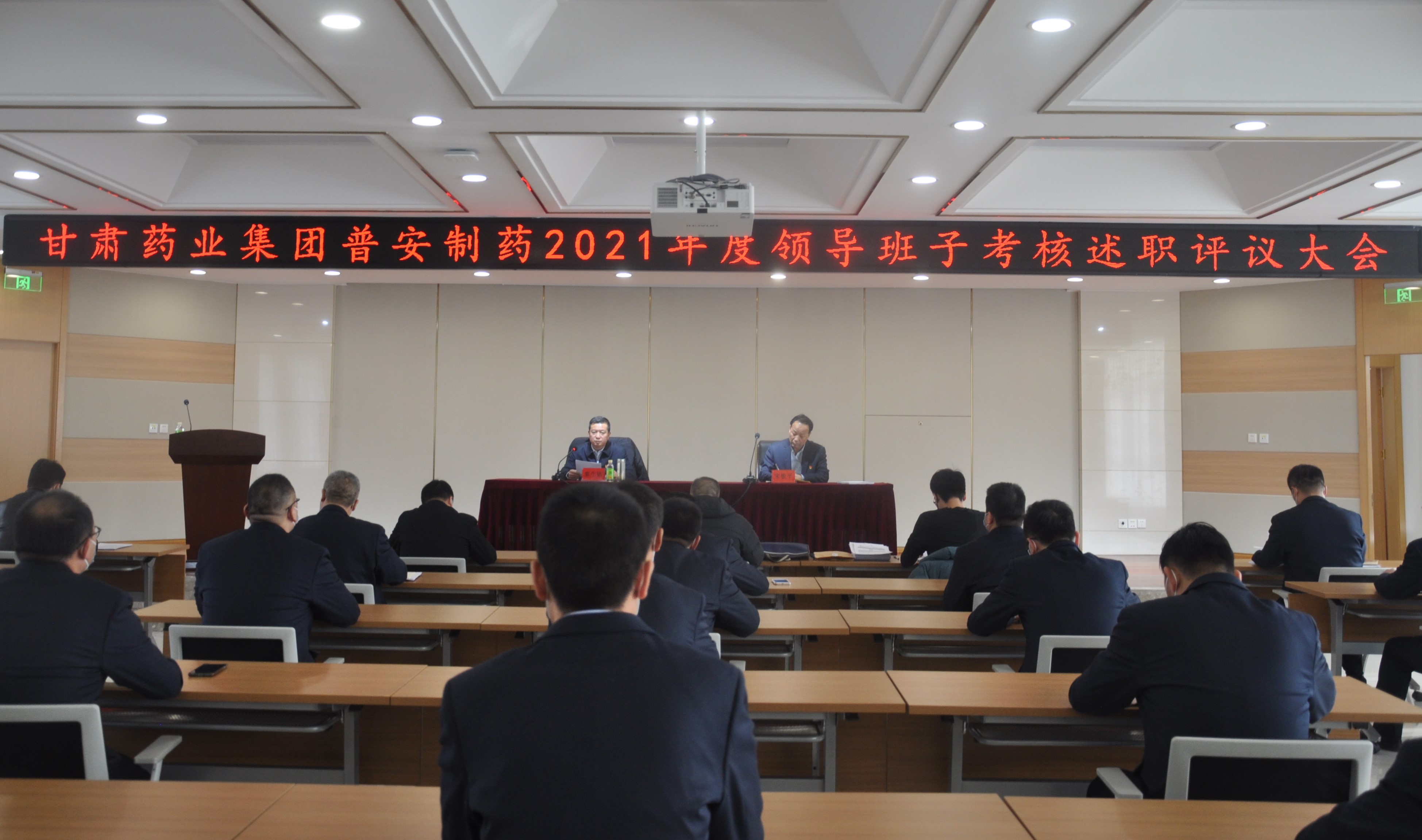 1月7下午,普安制藥召開2021年度領導班子及成員考核述職測評會議。集團公司黨委副書記、總經理竇生銘主持會議考核組成員對普安制藥領導班子及成員進行年度考核測評。公司班子成員及各部門負責人、黨員代表、工會會員代表、職工代表30余人參加會議。