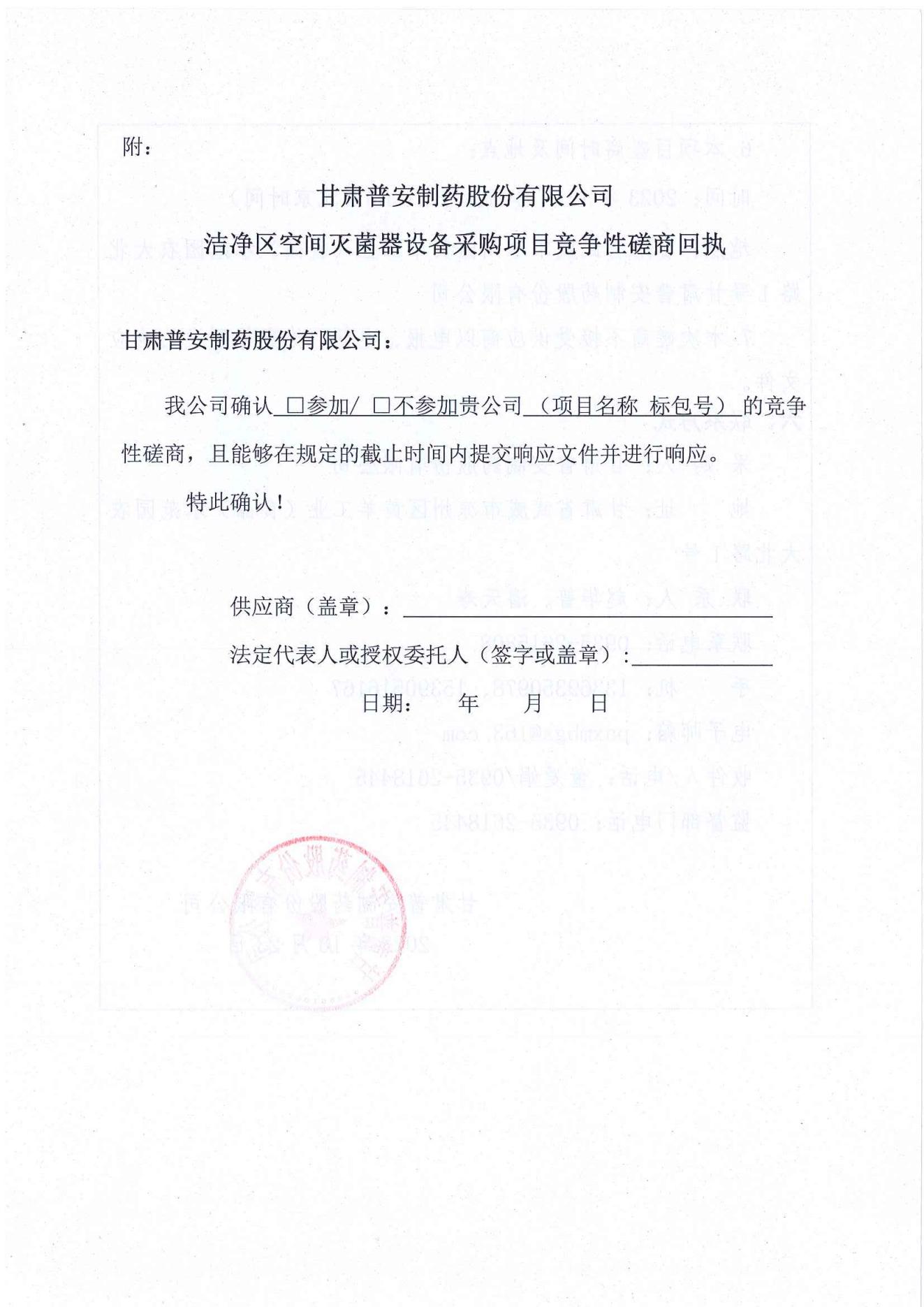 甘肅普安制藥股份有限公司年產5000 萬盒(3億支)宣肺止嗽合劑等液體制劑生產線升級改造項目潔凈區過氧化氫空間滅菌系統設備采購競爭性磋商公告