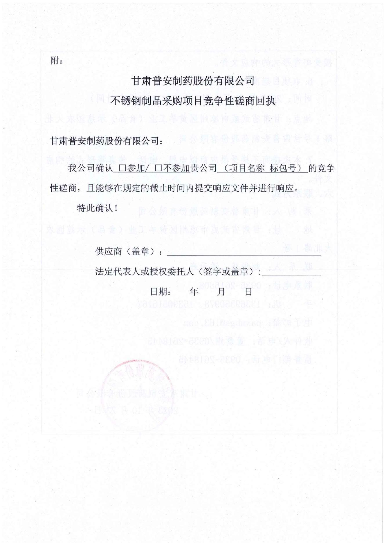 甘肅普安制藥股份有限公司年產(chǎn)5000 萬盒(3億支)宣肺止嗽合劑等液體制劑生產(chǎn)線升級改造項目不銹鋼制品采購競爭性磋商公告