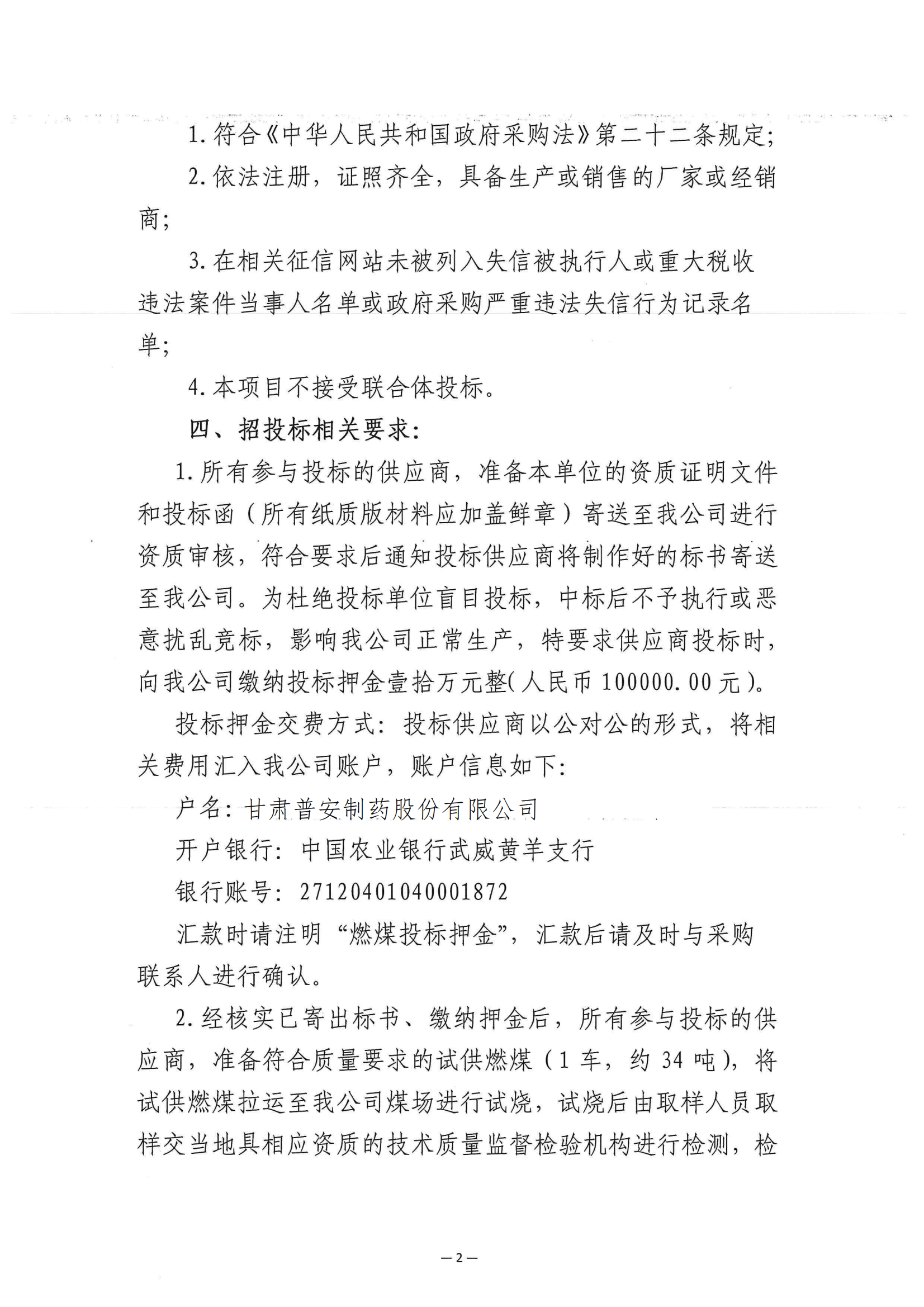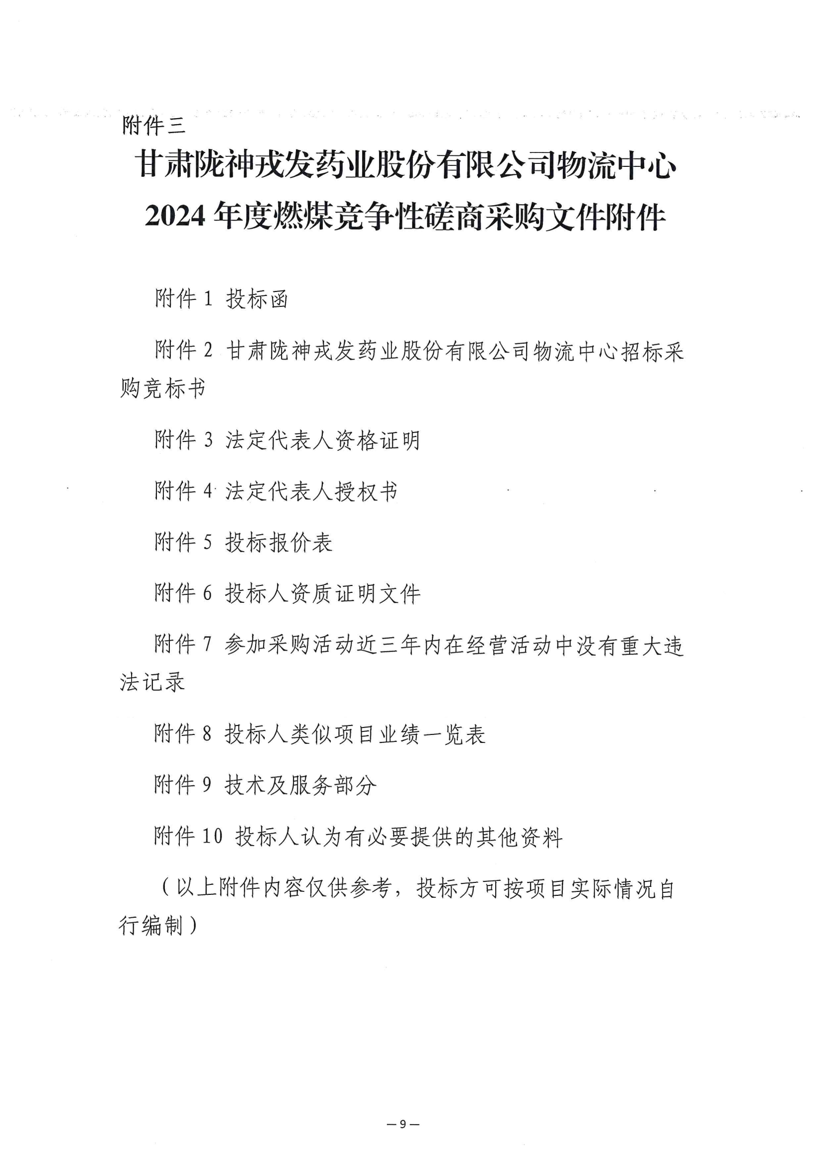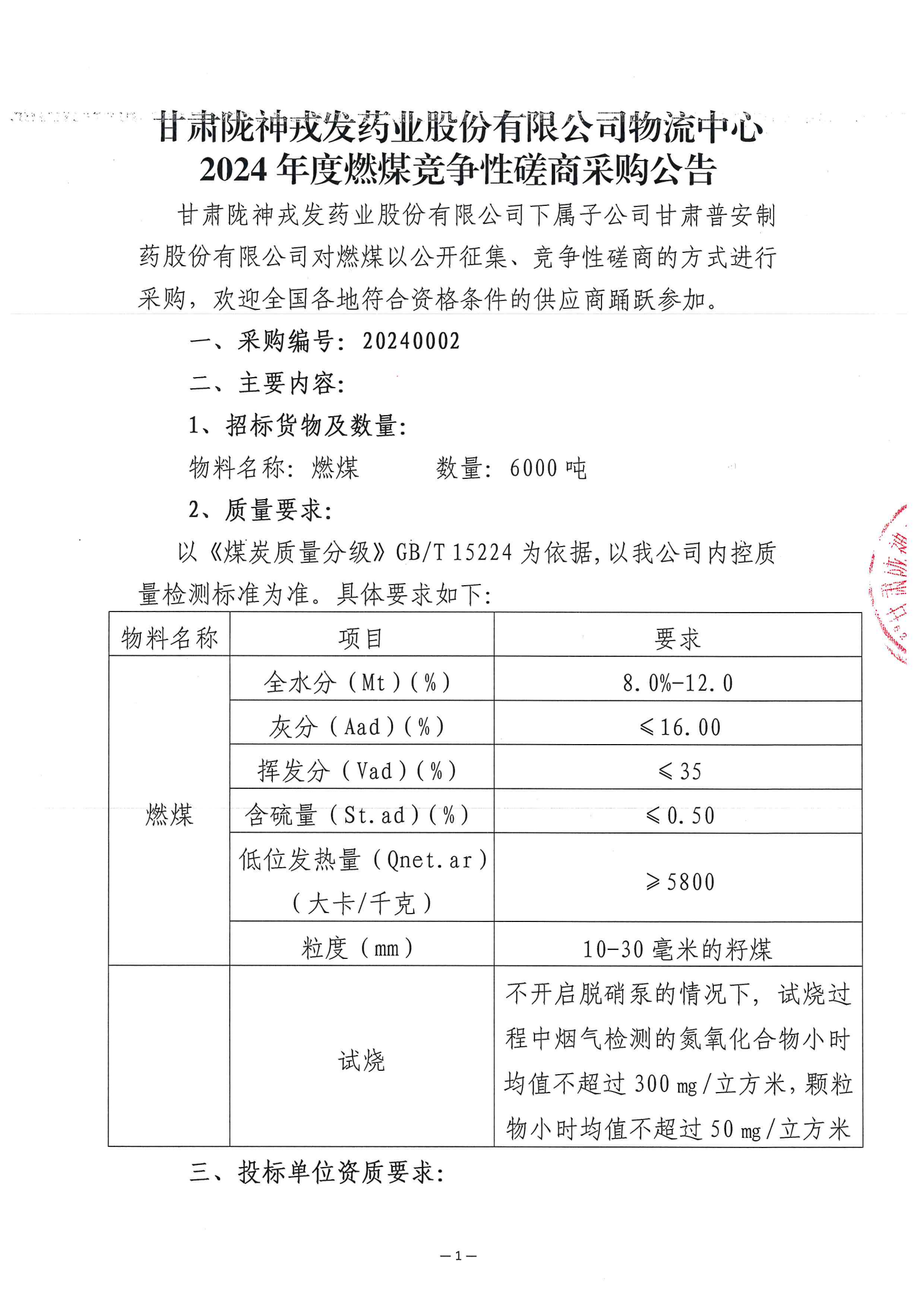 甘肅隴神戎發藥業股份有限公司物流中心2024年度燃煤競爭性磋商采購公告