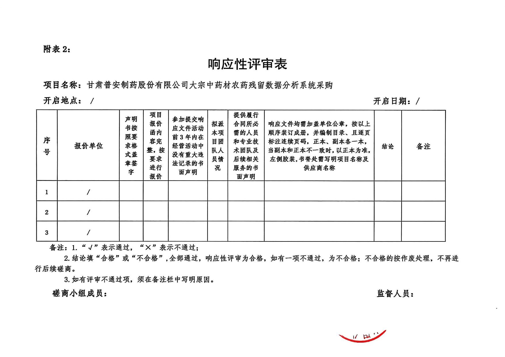 甘肅普安制藥股份有限公司大宗中藥材農藥殘留數據分析系統采購競爭性磋商公告