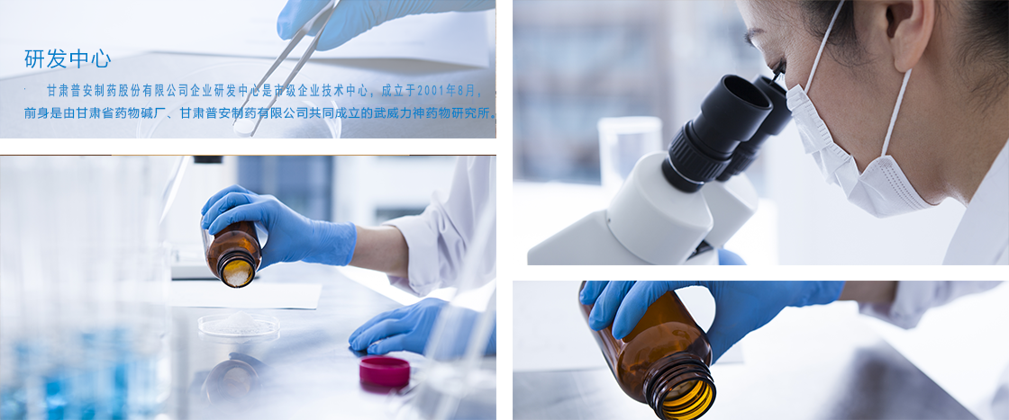 甘肅普安制藥股份有限公司研發(fā)中心依托公司“甘肅省企業(yè)技術(shù)中心”“武威市技術(shù)轉(zhuǎn)移中心”“武威市中藥止嗽制劑技術(shù)創(chuàng)新中心”“武威市企業(yè)技術(shù)中心”“武威市麻精藥品重點實驗室”五個研發(fā)平臺,經(jīng)過持續(xù)發(fā)展,已構(gòu)建起集信息收集與分析、技術(shù)創(chuàng)新、新產(chǎn)品研發(fā)、中試生產(chǎn)于一體的研發(fā)體系。